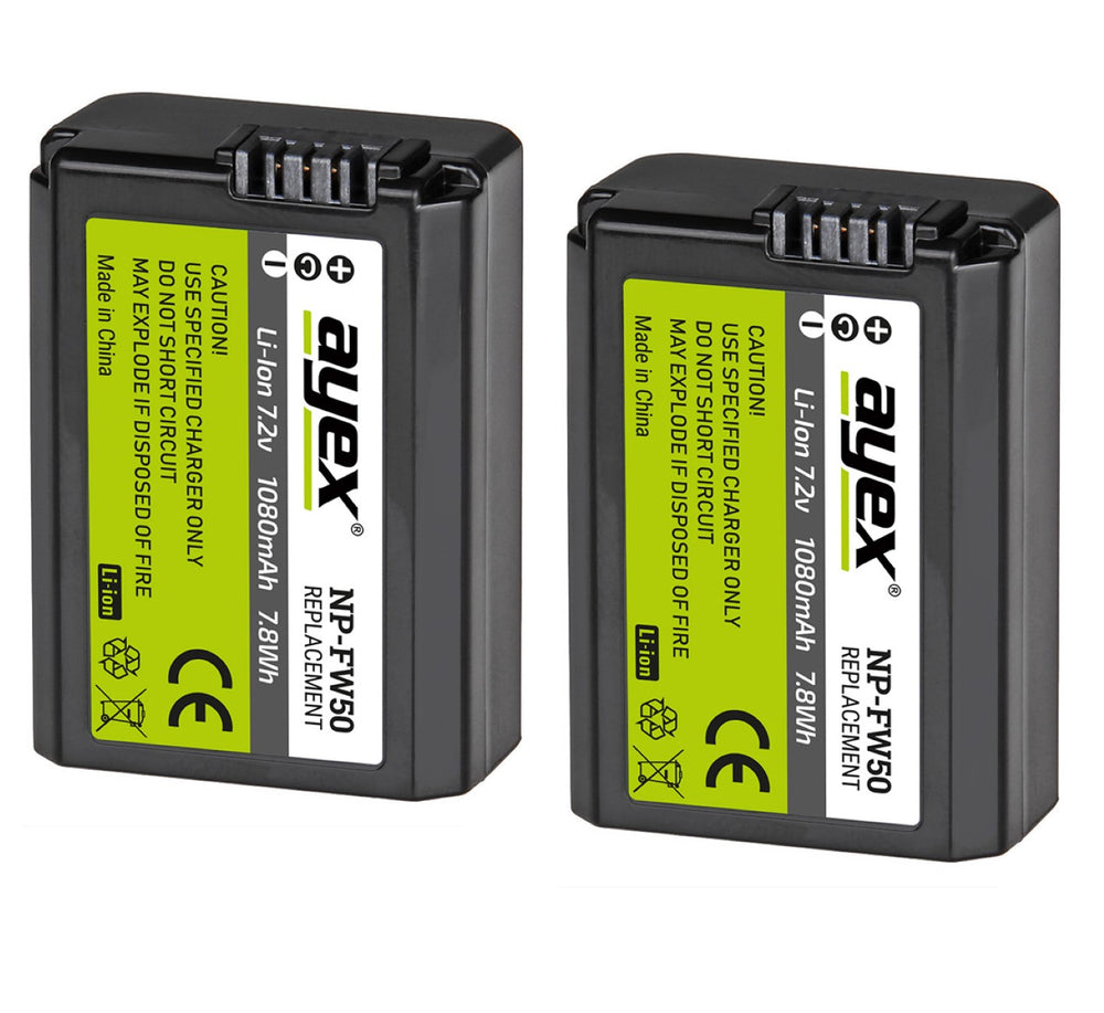 ayex NP-FW50 Akku 2er Set für z.B. Sony Alpha a7 a7 II a7R a7R II a7S a6500 a6300 RX10