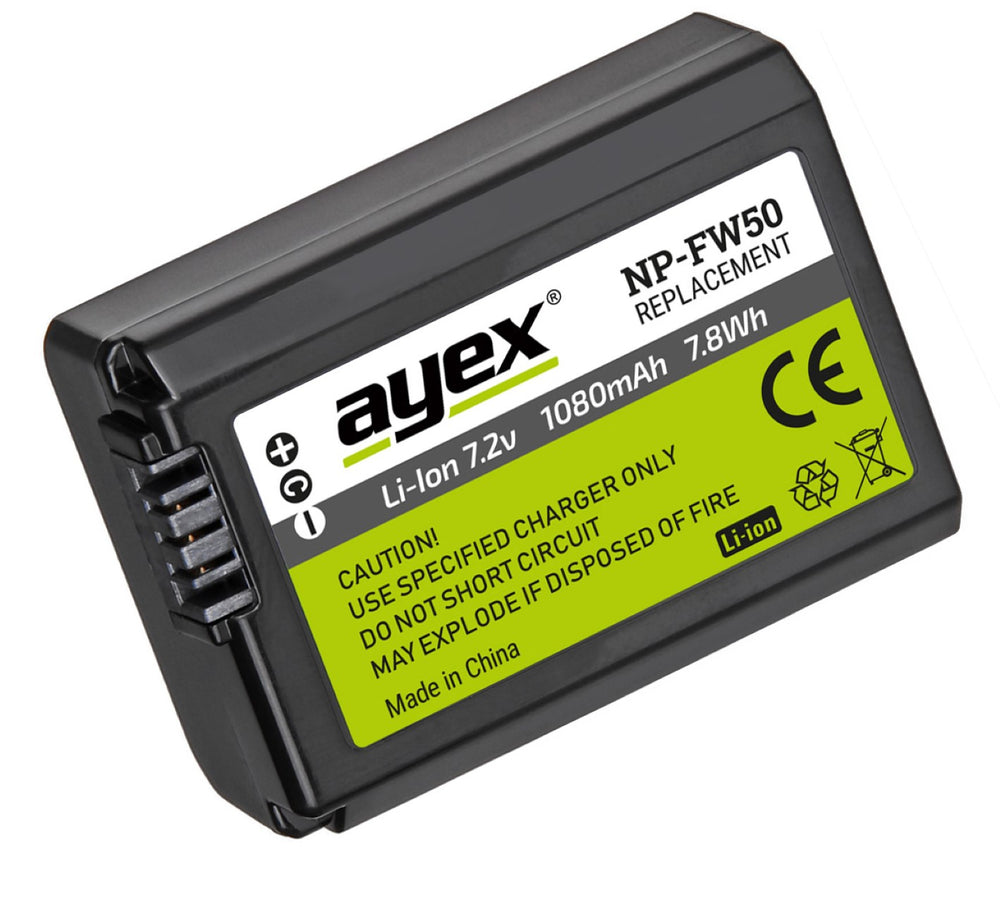 Der ayex NP-FW50 Akku verfügt über umfassende Sicherheitsmerkmale wie Schutz vor Kurzschluss, Überladung und Überhitzung. Diese Funktionen sorgen für einen sicheren Betrieb und tragen zur Langlebigkeit Ihrer Kamera und des Akkus bei.