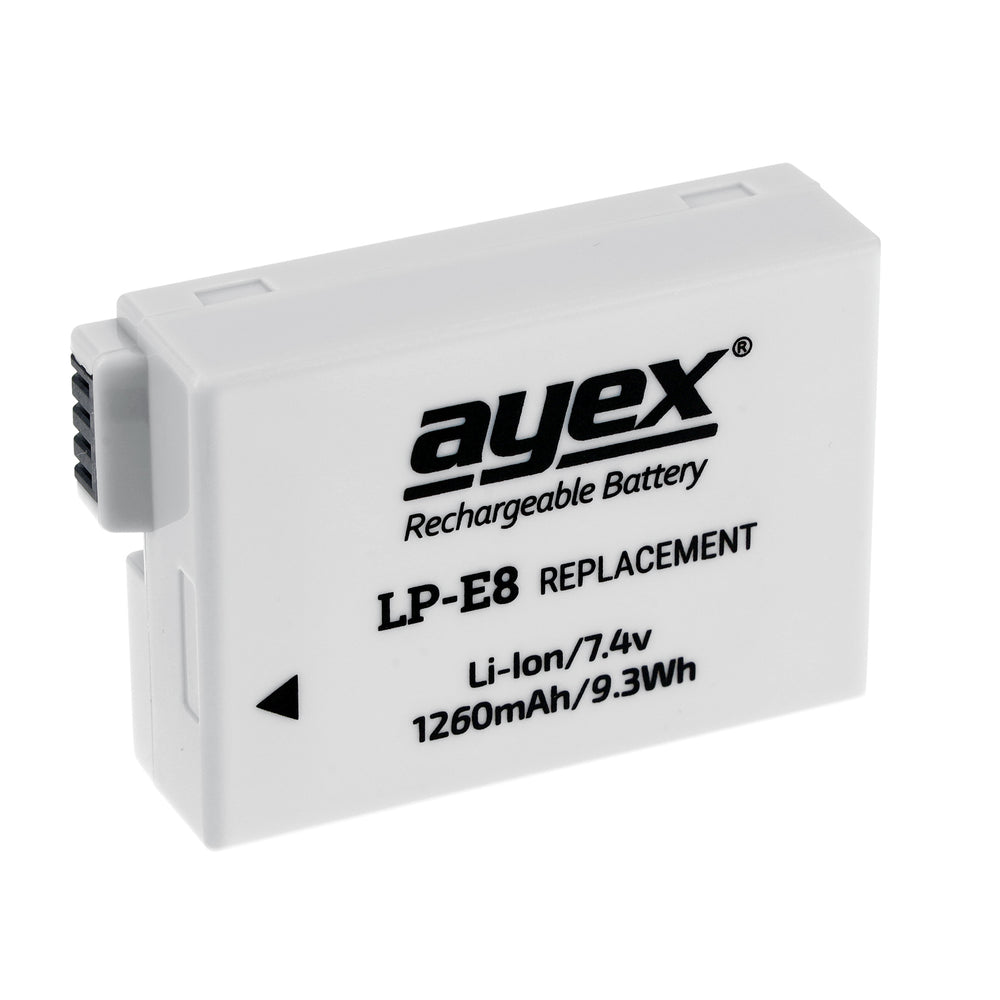 Der ayex LP-E8 Akku ist die perfekte Ergänzung für Ihre Canon Kamera, wenn Sie eine zuverlässige und langlebige Energiequelle benötigen. Speziell entwickelt für Modelle wie die Canon EOS 700D, bietet dieser hochwertige Lithium-Ionen-Akku eine starke Leistung und eine verlängerte Betriebsdauer, damit Sie mehr Aufnahmen ohne Unterbrechung machen können.