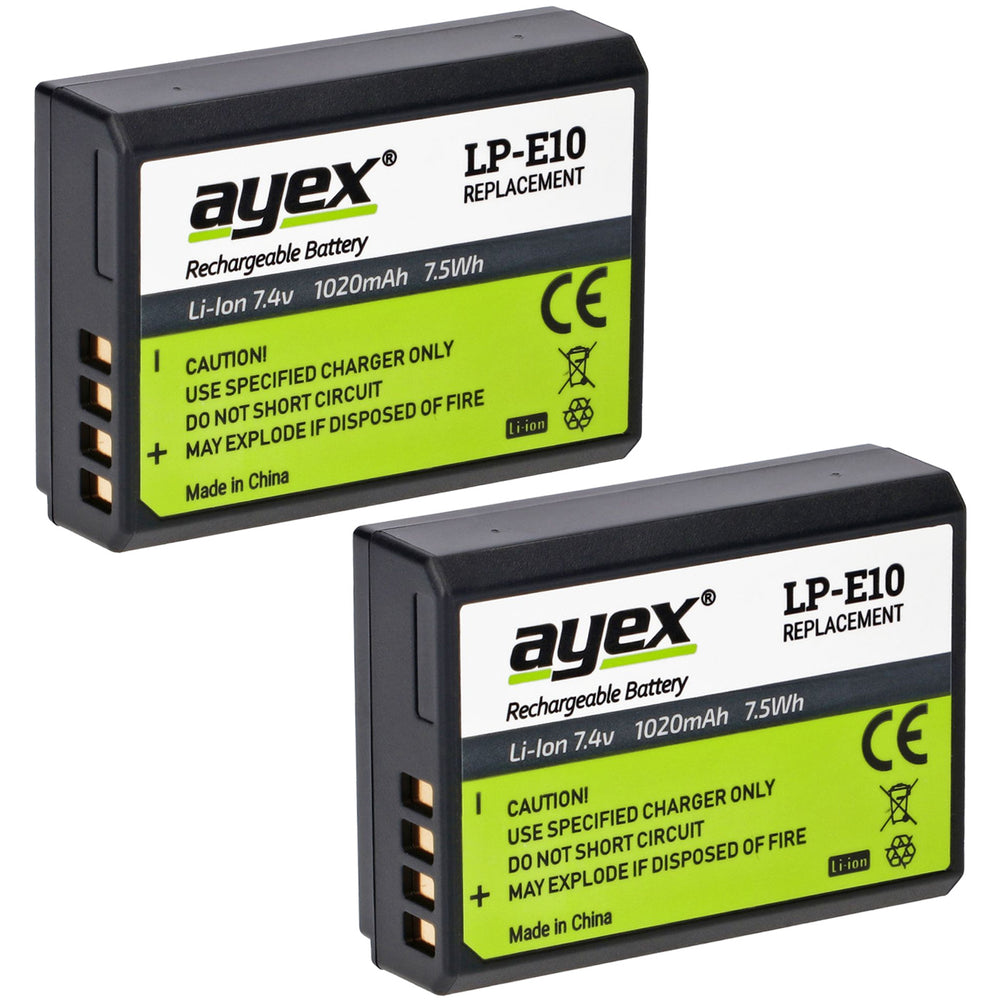 ayex LP-E10 Akku 2er Set für z.B. Canon EOS 1100D, 1200D