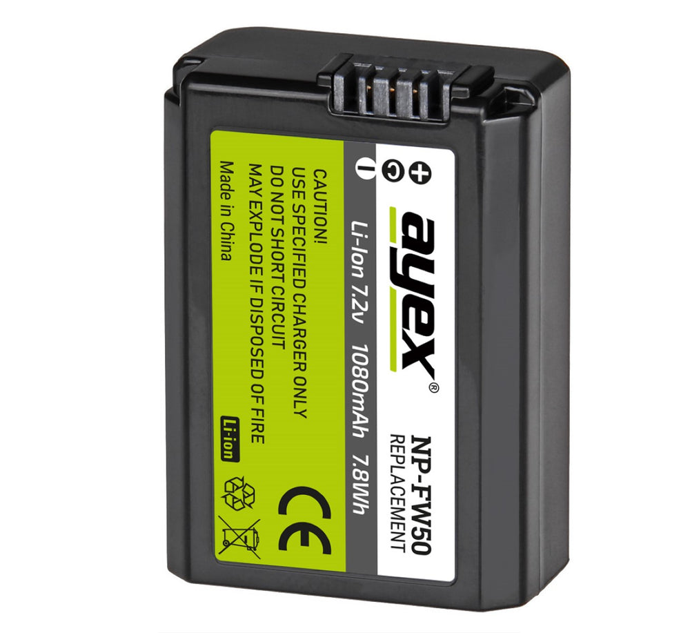 Der ayex NP-FW50 Akku verfügt über umfassende Sicherheitsmerkmale wie Schutz vor Kurzschluss, Überladung und Überhitzung. Diese Funktionen sorgen für einen sicheren Betrieb und tragen zur Langlebigkeit Ihrer Kamera und des Akkus bei.