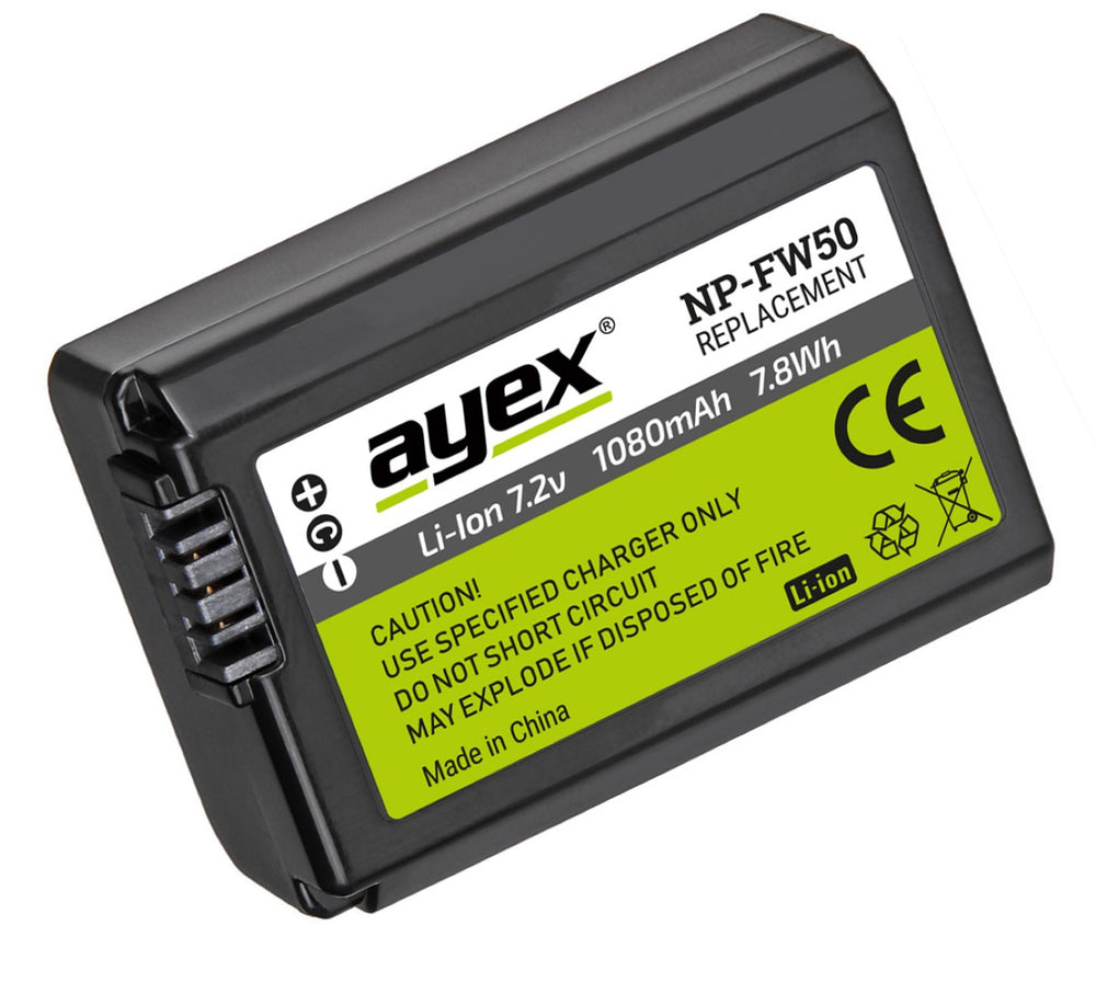 ayex NP-FW50 Akku für z.B. Sony Alpha a7 a7 II a7R a7R II a7S a6500 a6300 RX10