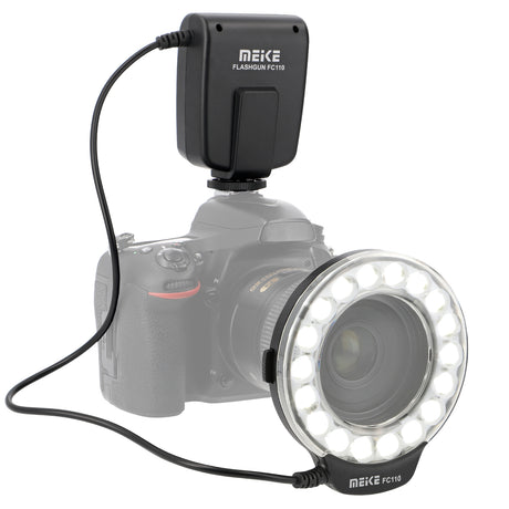 Makro Ringblitz & Ringleuchte für Sony Kameras mit Multi Interface Shoe Meike FC-110 LED
