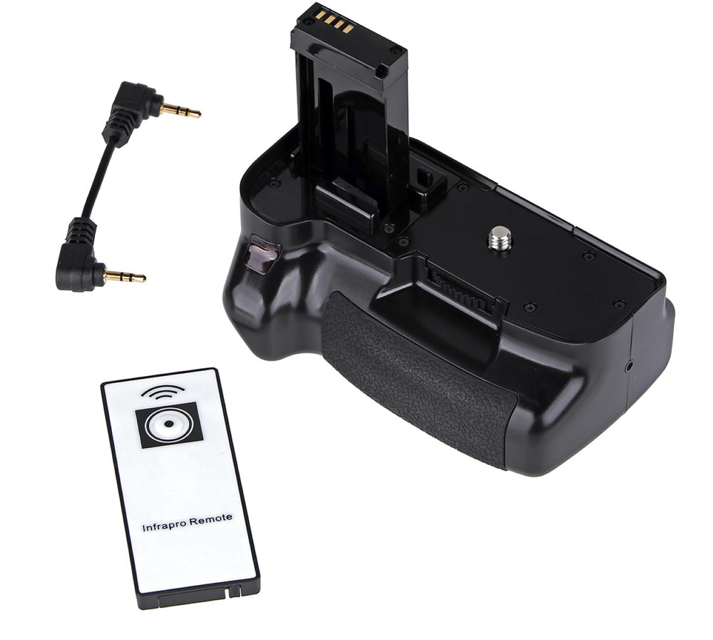 Dank des handlichen Batteriegriffs optimieren Sie die Leistungsfähigkeit Ihrer Canon 100D, SL1 Kamera. Denn hiermit lässt sich ein zusätzlicher Akku verwenden, sodass lästiges Akkuwechseln oder Zwischenladen endlich der Vergangenheit angehören. Dieser Akkugriff funktioniert mit original Canon LP-E12 Akkus ebenso wie mit baugleichen, z. B. unseren ayex Akkus.