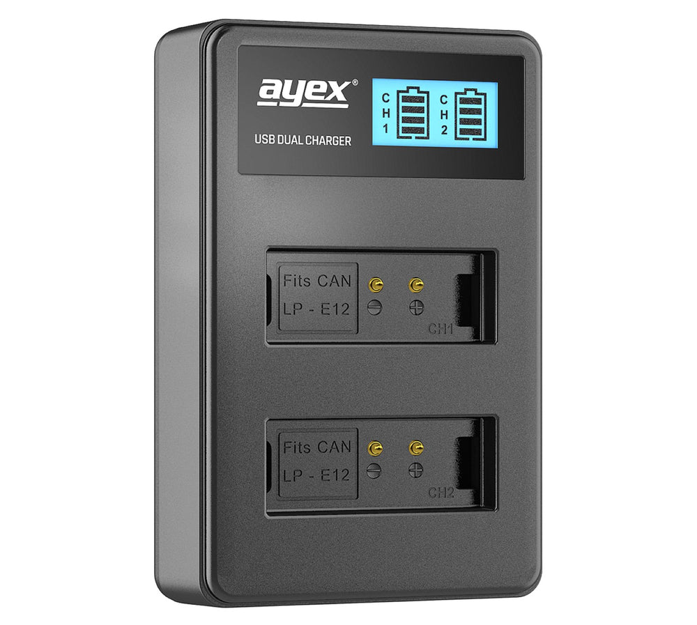 - 1 x ayex USB Dual-Ladegerät für LP-E12 Akkus