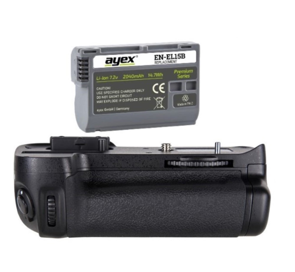 Dieses Produktpaket rund um den handlichen ayex Batteriegriff für Ihre Nikon Kamera ermöglicht Ihnen, zu einem attraktiven Preis alle für den Betrieb des Batteriegriffs notwendigen Produkte in nur einer Bestellung zu erhalten und direkt mit dem Fotografieren loslegen zu können.