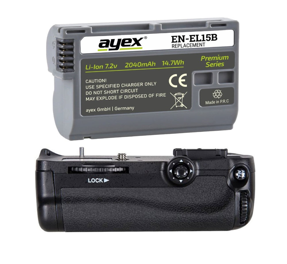 ayex Batteriegriff für Nikon D7100, D7200 + EN-EL15B Akku ähnlich wie MB-D15