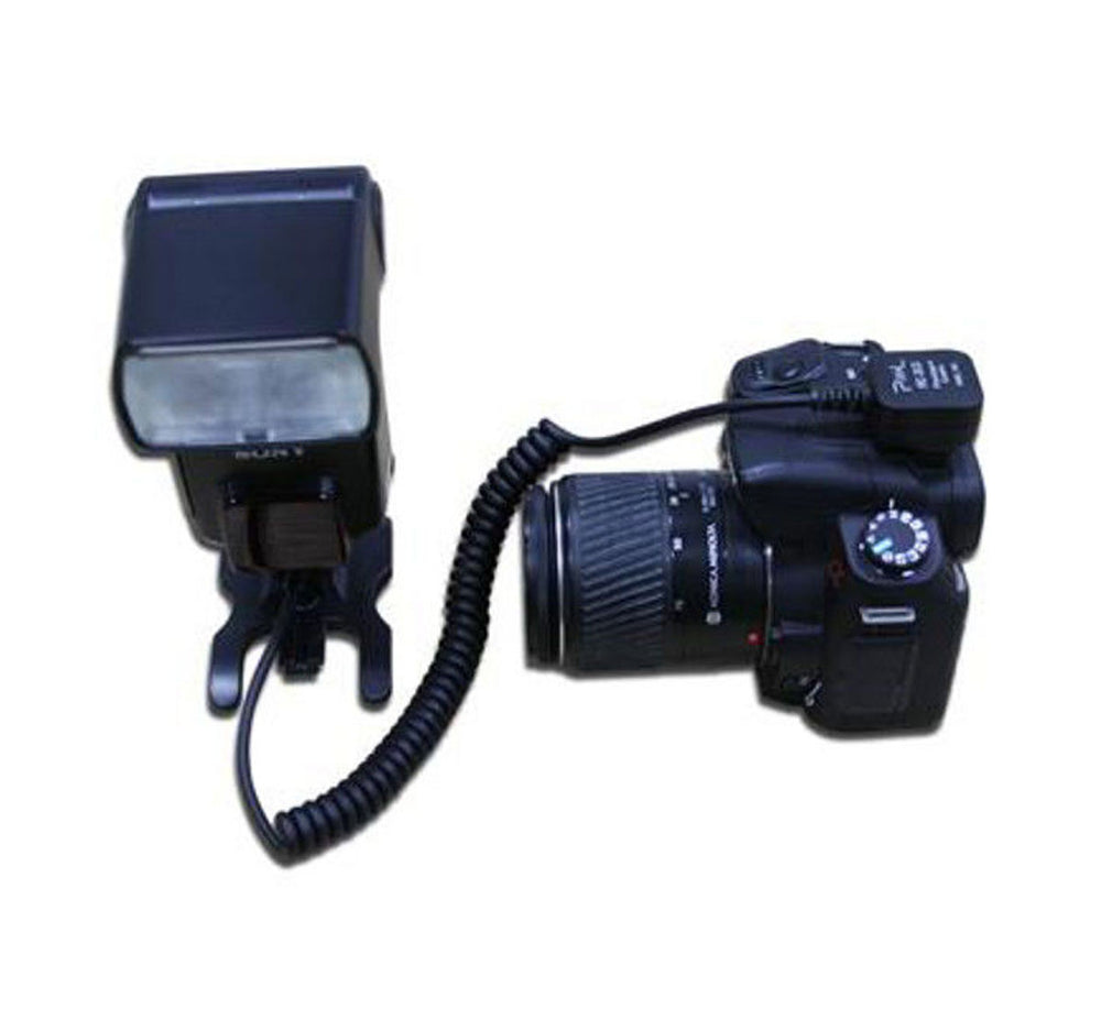 Das Kabel überträgt nicht nur den Zündimpuls, sondern ermöglicht auch eine TTL-Blitzmessung, bei der die Kamera die geeignete Blitzbelichtung berechnet und die Blitzintensität darauf abstimmt. Der Anschluss am Blitzende lässt sich sowohl in einen Blitzschuh schieben als auch auf ein Stativ schrauben, wofür ein ¼ Zoll Gewinde vorgesehen ist. Das Spiralkabel verhindert lästigen Kabelsalat, ist Platz sparend, robust und haltbarer als normale Kabel.