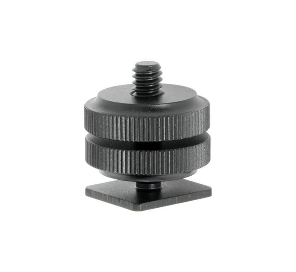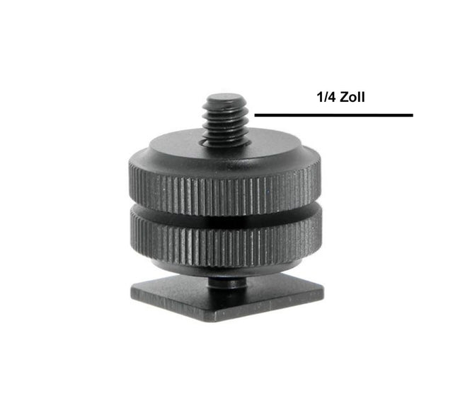 Dieser Blitzschuhadapter mit 1/4-Zoll-Schraube eignet sich hervorragend, um Zubehör wie MagicArms, TFT-Monitore und weiteres Equipment an einem Standard-Blitzschuh zu befestigen. Er besteht aus robustem Aluminium, ist 26 mm hoch und verfügt über zwei Konterringe.