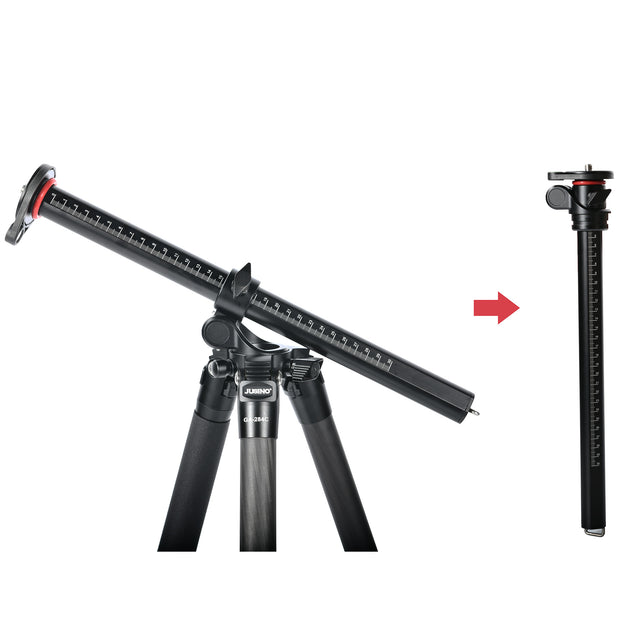 Das JUSINO GA-284C ist ein flexibles und stabiles Karbon-Stativ mit innovativer Mittelsäule, die sich stufenlos neigen und drehen lässt. Es trägt bis zu 18 kg und erreicht eine Höhe von 170 cm. Ohne Mittelsäule sind Bodenaufnahmen möglich; ein 3/8"-Adapter bleibt dabei nutzbar.