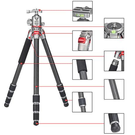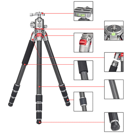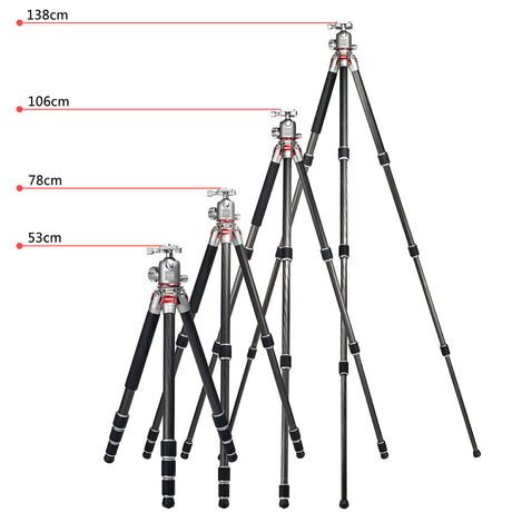 JUSINO Leichtes Karbon Fotostativ mit Kugelkopf Stativ bis 138cm 12kg AF-254C FGS-36