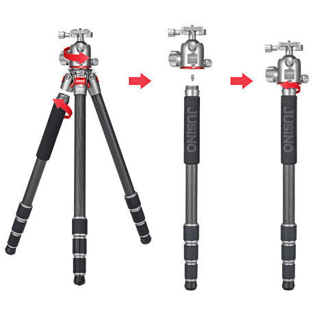 JUSINO Leichtes Karbon Tripod Monopod mit Kugelkopf bis 160cm 12kg FGS-30 TK-254C