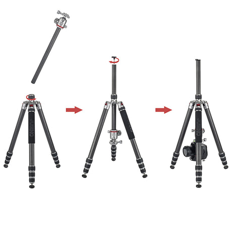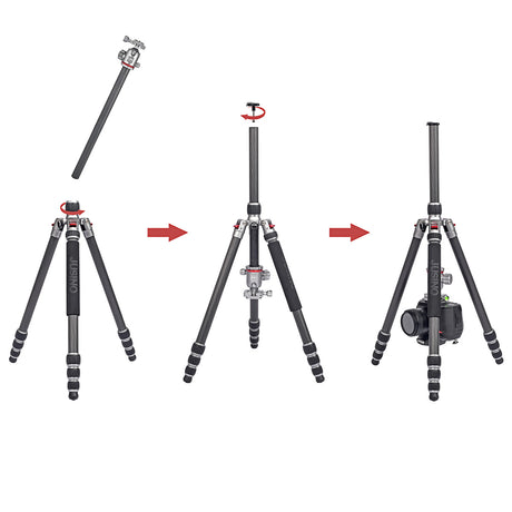 JUSINO Flexibles leichtes Karbon-Stativ + Profi Kugelkopf max. 170cm entfernbare Mittelsäule