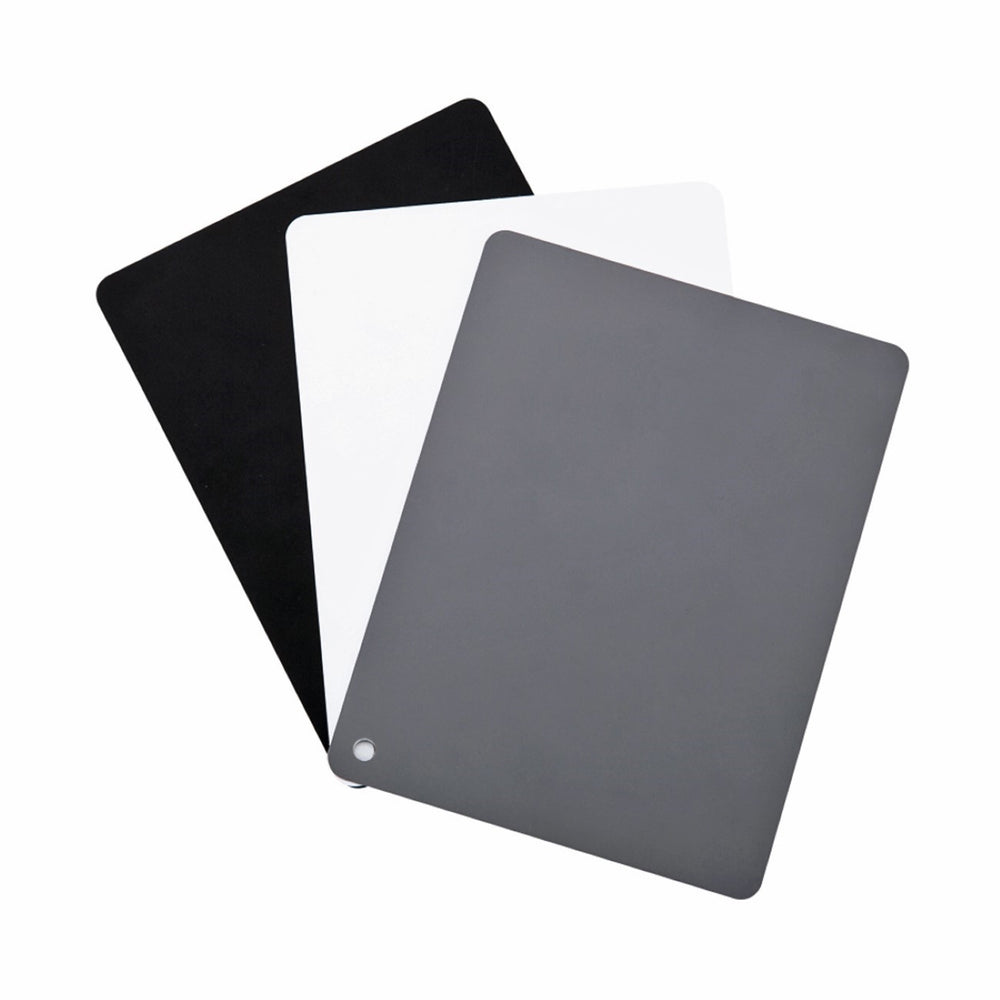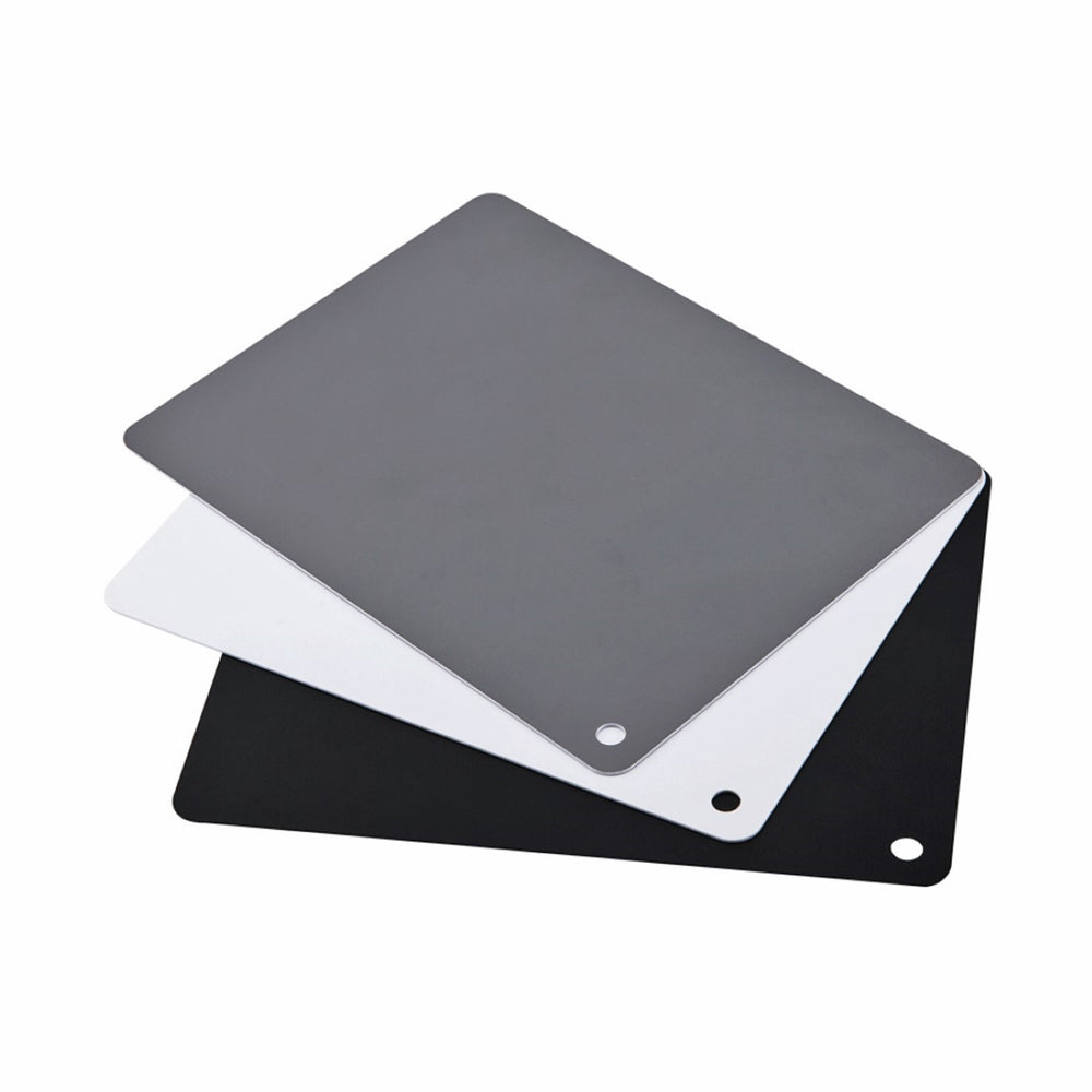 • 3-in-1 Set bestehend aus Graukarte, Weißkarte und Schwarzer Karte für umfassende Farb- und Belichtungskontrolle