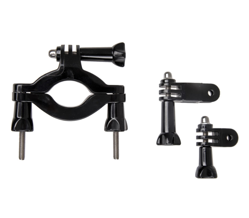 Dieses Halterungssystem ermöglicht Ihnen spektakuläre Aufnahmen. Ihre GoPro Kamera kann hiermit sicher an Lenker, Sattelstütze und anderen Rohren montiert werden, um vom Fahrrad oder anderen Sportgeräten aus zu filmen.