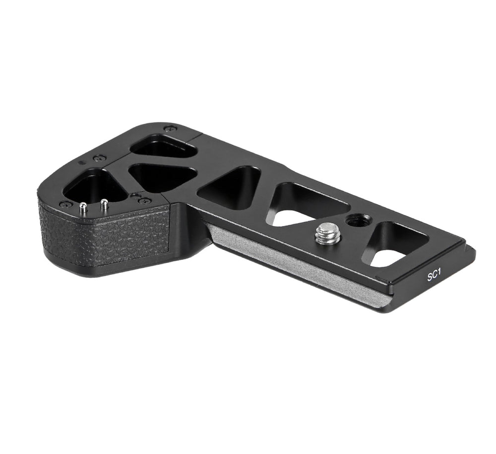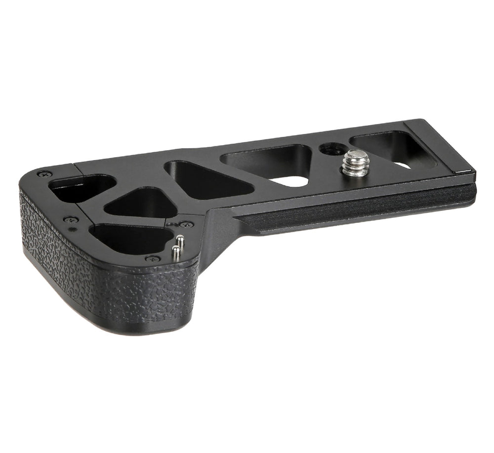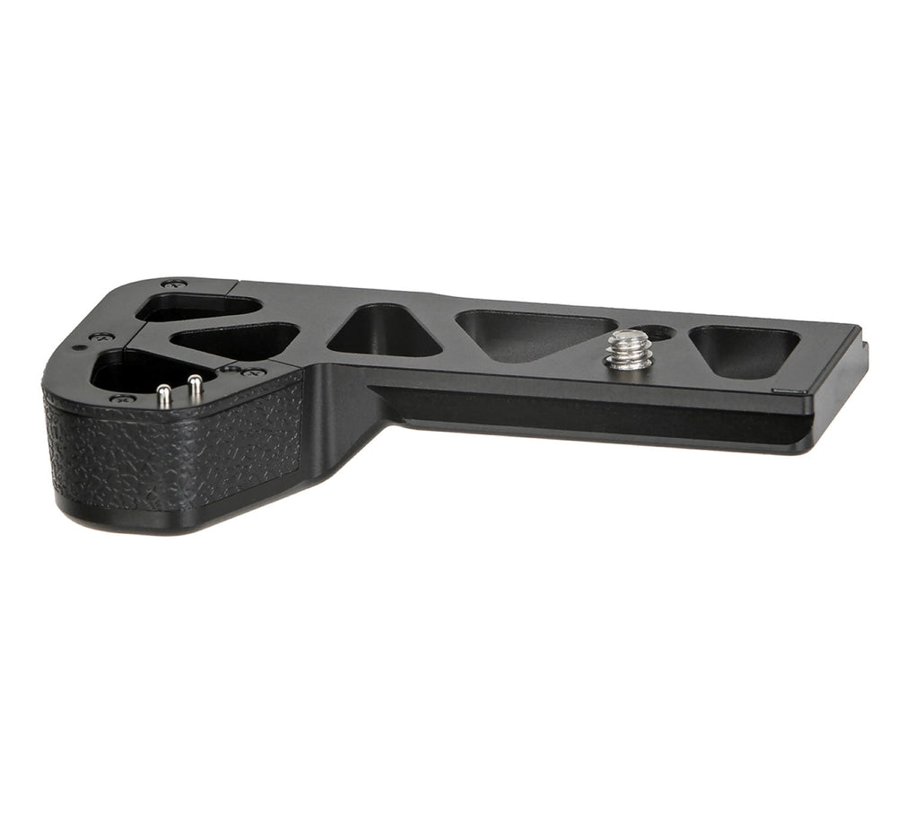 Die Platte wird einfach an das Stativgewinde der Kamera geschraubt und vergrößert deren Fläche für einen ergonomischen Halt. Aufgrund eines zusätzlichen Gewindes an der Unterseite kann sie auch auf einem Stativ montiert oder an einem Gurt angebracht werden. Die solide Halterung wurde mit CNC-Präzisionstechnik hergestellt und besteht aus einer hochwertigen Aluminium-Legierung. Sie ist mit Arca-Swiss-Standard Systemen kompatibel.