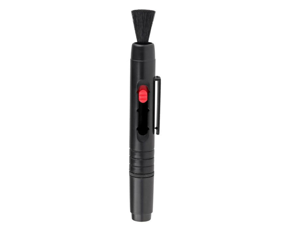 Dieser handlich verstaubare Stift reinigt schnell und schonend empfindliche Glasoberflächen, er ist für alle Arten von Video-, Foto- und Fernglasobjektiven geeignet, auch für mehrfach beschichtete. Auf einer Seite befindet sich ein Reinigungspinsel, der sich aus- und einfahren lässt. Hiermit werden aufliegende Schmutzpartikel beseitigt. Die andere Seite entfernt mithilfe einer schonenden Lotion anhaftende Verschmutzungen wie Fingerabdrücke ohne Rückstände.