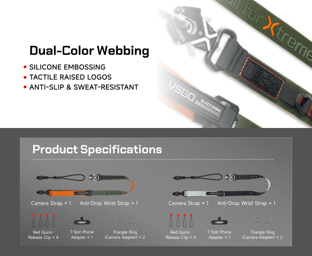 VSGO Black Snipe Urban Kamera-Gurt (Q-Black) – mit Quick-Release, Anti-Twist & Handgurt-Set