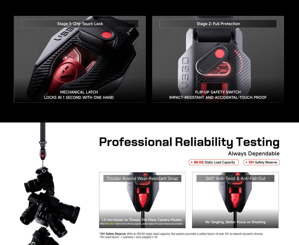 - Maximale Belastbarkeit: 40 kg statische Tragkraft, 10× Sicherheitsreserve – ideal für spiegellose und DSLR-Kameras.