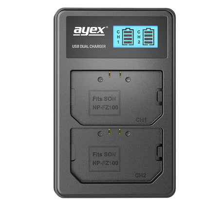 USB Dual Ladegerät für Sony NP-FZ100 Akkus beleuchtetes Display Ladestandanzeige