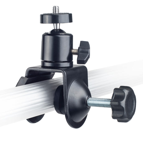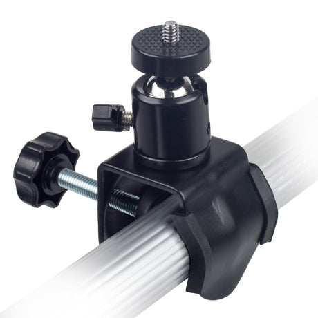 Stativklemme mit Kugelkopf & drehbaren 1/4 Zoll Mount bis 4 cm Rohrdurchmesser gummiert