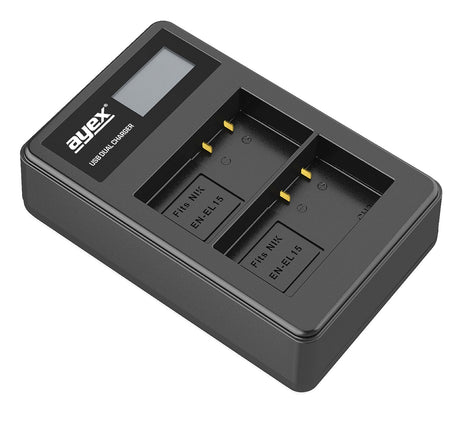 USB Dual Ladegerät für Nikon EN-EL15 beleuchtetes Display Ladestandanzeige