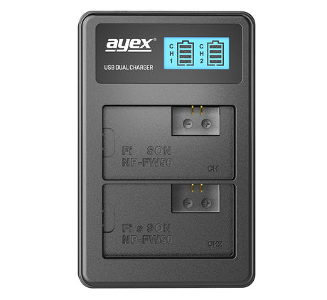 USB Dual Ladegerät für Sony NP-FW50 Akkus beleuchtetes Display Ladestandanzeige