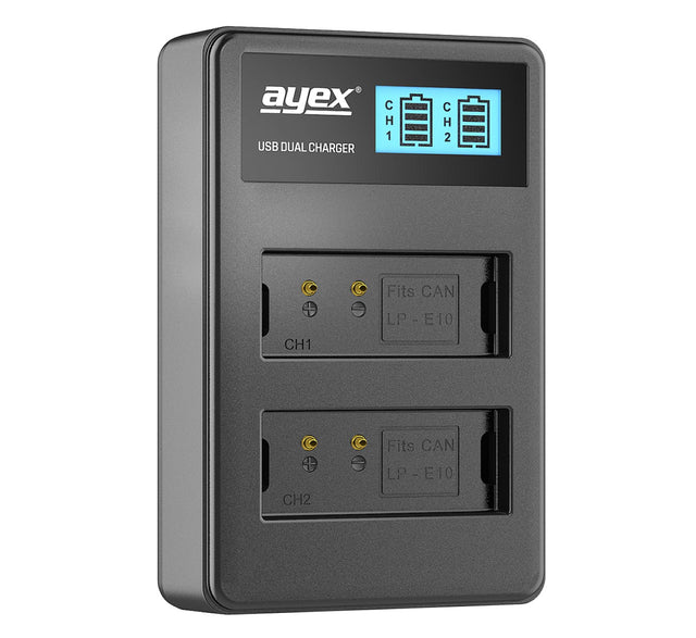 ayex USB Dual-Ladegerät für Canon LP-E10 Akkus