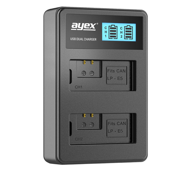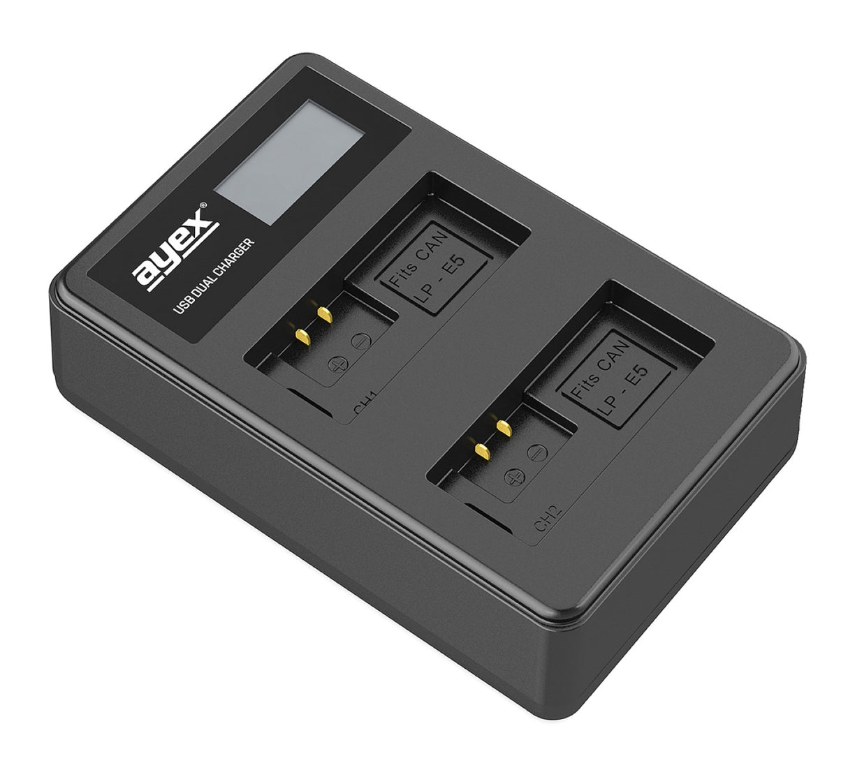 ayex USB Dual-Ladegerät für Canon LP-E5 Akkus
