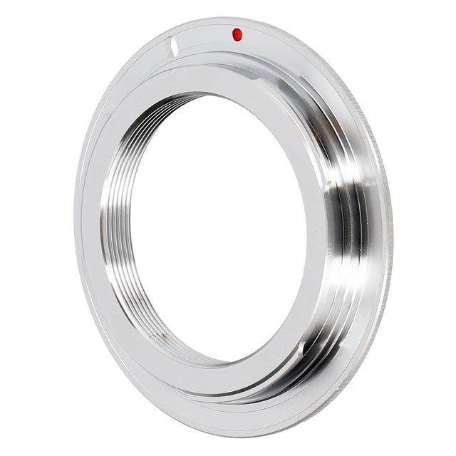 Dieser Adapter aus verchromtem Messing erlaubt die Anbringung von M42 Objektiven an Canon EOS Kameras.