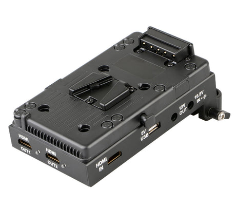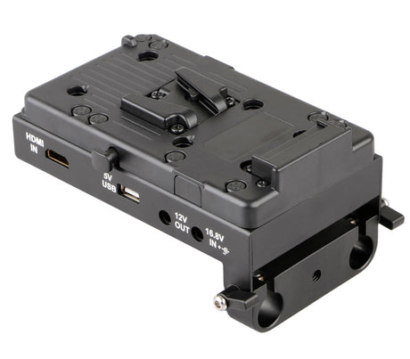V-Mount Akkuplatte inkl. Spannungswandler mit vielen Anschlüssen (Powertap, HDMI, USB, Rig Rods)
