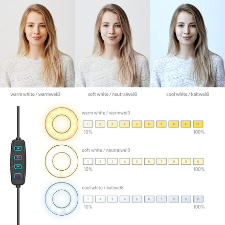 ayex Smartphonehalterung, LED-Licht mit USB - dimmbar, warmes und kaltes Licht (schwarz, weiß)