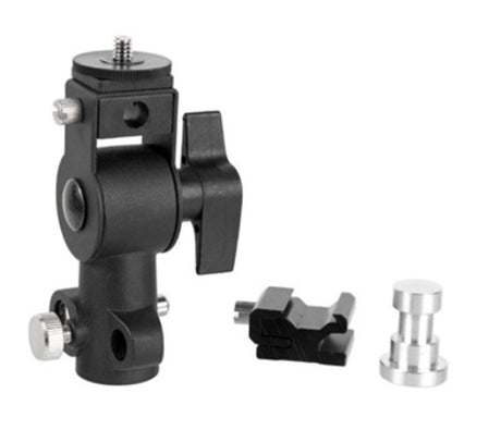 Blitz und Schirmhalter mit 3/8" 1/4" Gewinde neigbarer Halter für Blitzgeräte Studioschirme Modell C