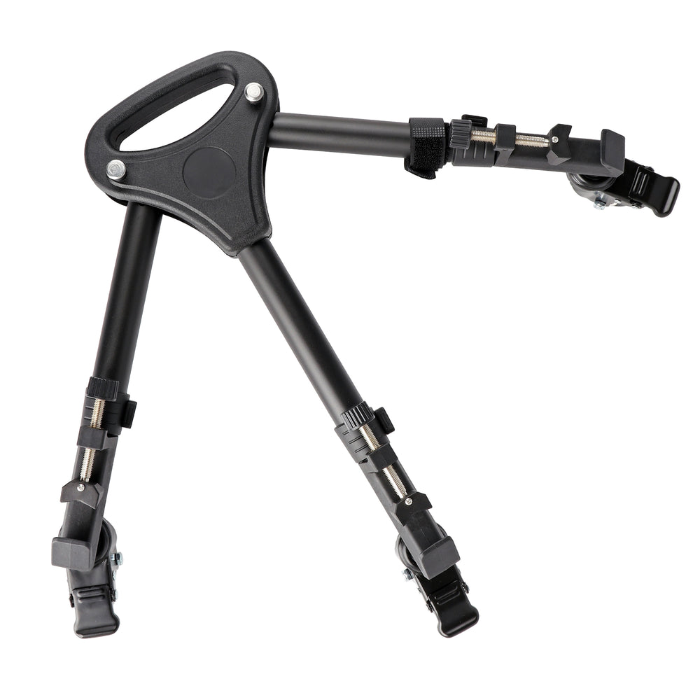 Ganz bequem können Sie Ihr Fotostativ mit diesem Rollwagen umpositionieren. Es wird hierzu einfach in die Vorrichtungen gestellt und mit den Rändelschrauben arretiert. Die 3 Rohre des Wagens sind verstellbar, sodass fast jedes gängige Dreibeinstativ darauf montiert werden kann. Der Mindestabstand zwischen zwei Stativbeinen kann zwischen 54,5cm und 74cm betragen.