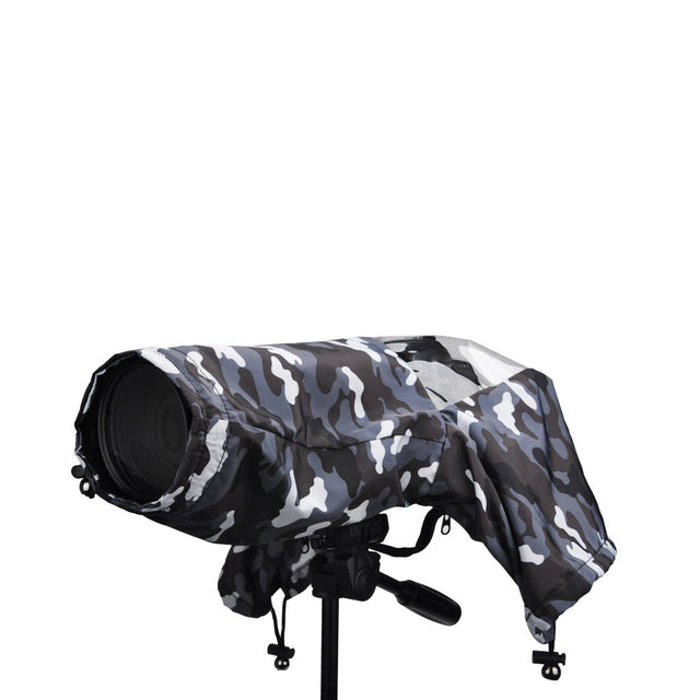 Es ist einfach, die Regenschutzhülle über Ihre Kamera zu montieren. Die Abdeckung verfügt über ein transparentes Fenster und ermöglicht es Ihnen, Ihren LCD-Bildschirm und den Sucher klar zu sehen. Außerdem haben Sie über zwei Seitenhülsen, Zugang zu Kamera- und Objektivsteuerungen.