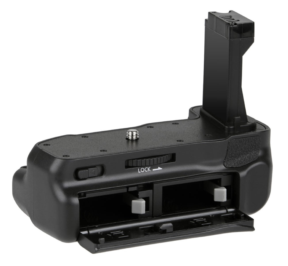 Mit dem Batteriegriff optimieren Sie die Leistungsfähigkeit Ihrer Canon EOS Kamera. Denn hiermit lässt sich ein zusätzlicher Akku verwenden, sodass lästiges Akkuwechseln oder Zwischenladen endlich der Vergangenheit angehören. Dieser Akkugriff funktioniert mit original Canon LP-E17 Akkus ebenso wie mit baugleichen, z. B. unseren ayex Akkus.