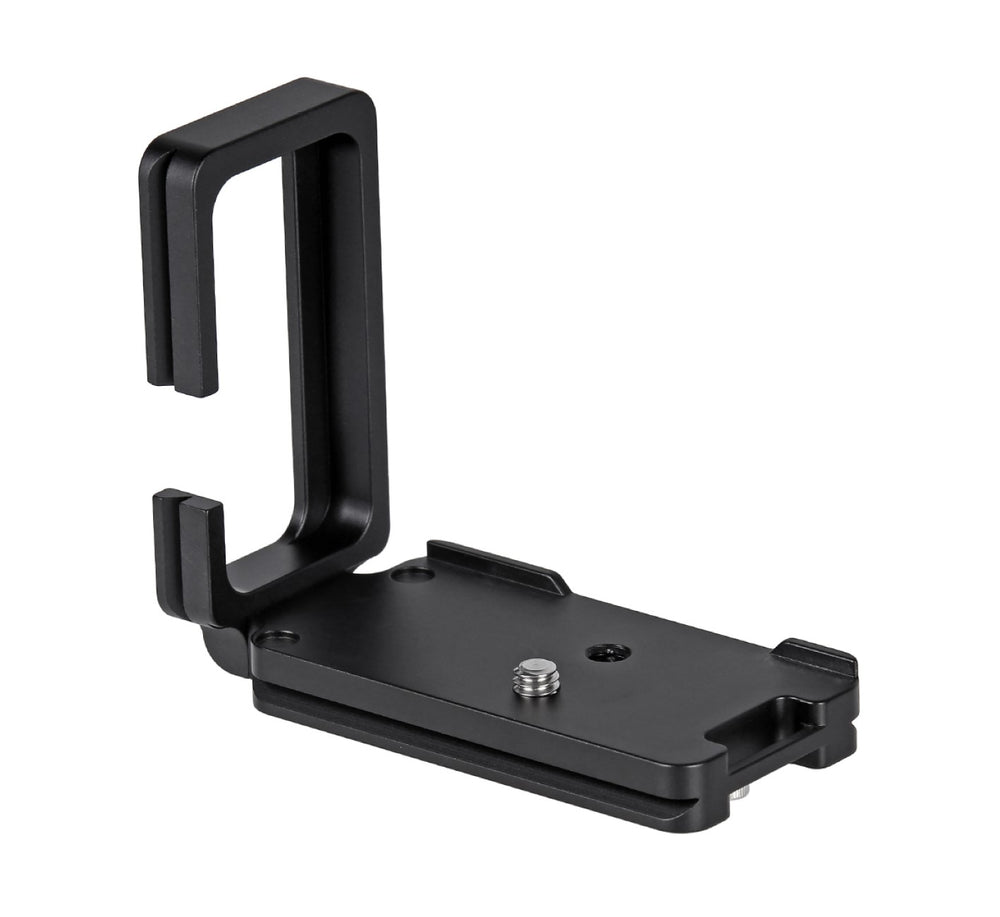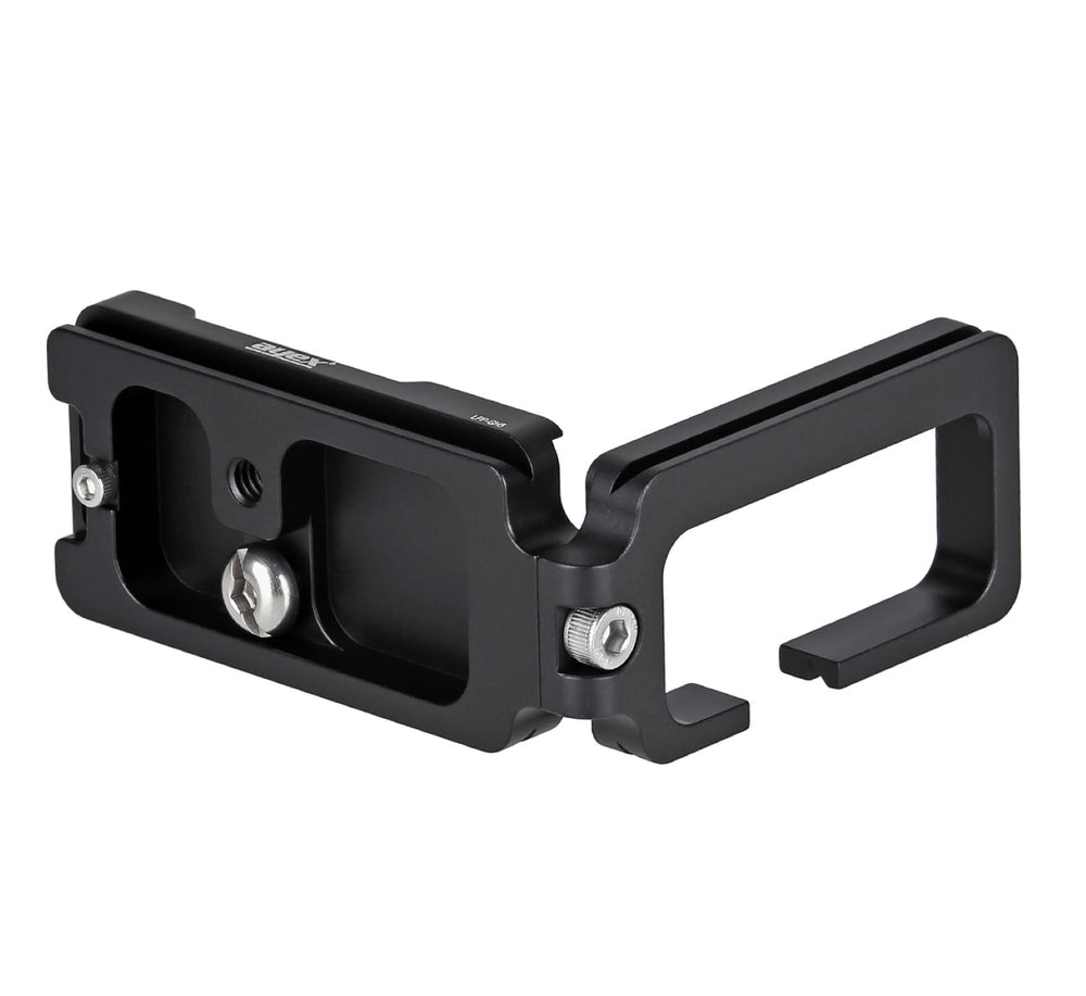 Diese sehr stabile Kamerahalterung wurde mit CNC-Präzisionstechnik hergestellt und besteht aus einer hochwertigen Aluminium-Legierung. Sie wurde für Panasonic Lumix DMC-GH5 Kameras konzipiert und ist kompatibel mit Arca-Swiss-Standard Systemen. Durch die passgenaue Form erhält die Panasonic Kamera zusätzliche Stabilität, besonders wenn sie geneigt wird oder wenn im Hochformat gearbeitet wird.