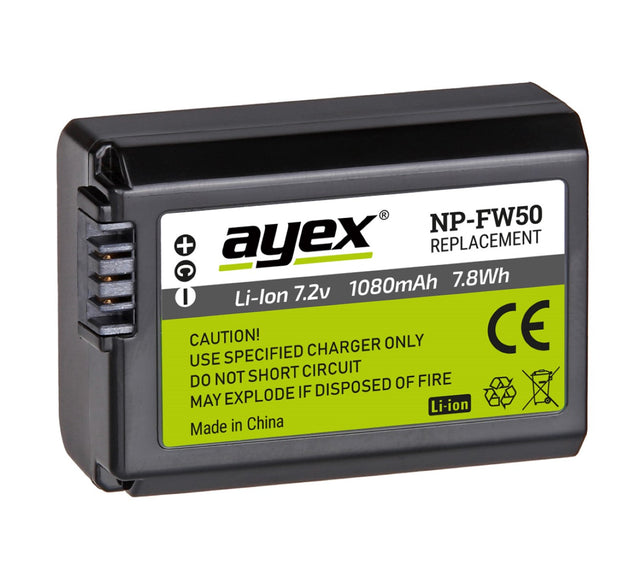 Der ayex NP-FW50 Akku verfügt über umfassende Sicherheitsmerkmale wie Schutz vor Kurzschluss, Überladung und Überhitzung. Diese Funktionen sorgen für einen sicheren Betrieb und tragen zur Langlebigkeit Ihrer Kamera und des Akkus bei.