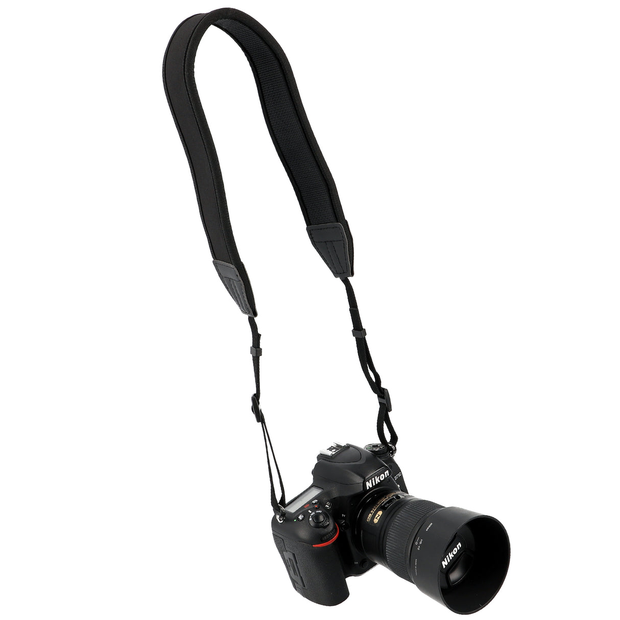 Dieser gepolsterte Neoprengurt bietet höchsten Tragekomfort bei längeren Fotoeinsätzen. Die rutschfeste Oberfläche sorgt für sicheren Halt, während sich der Gurt flexibel um den Hals oder über der Schulter tragen lässt. Die Länge ist auf bis zu 110 cm verstellbar – ideal für kleine bis große Kameras, von Retro-Modellen bis zu schweren DSLRs.