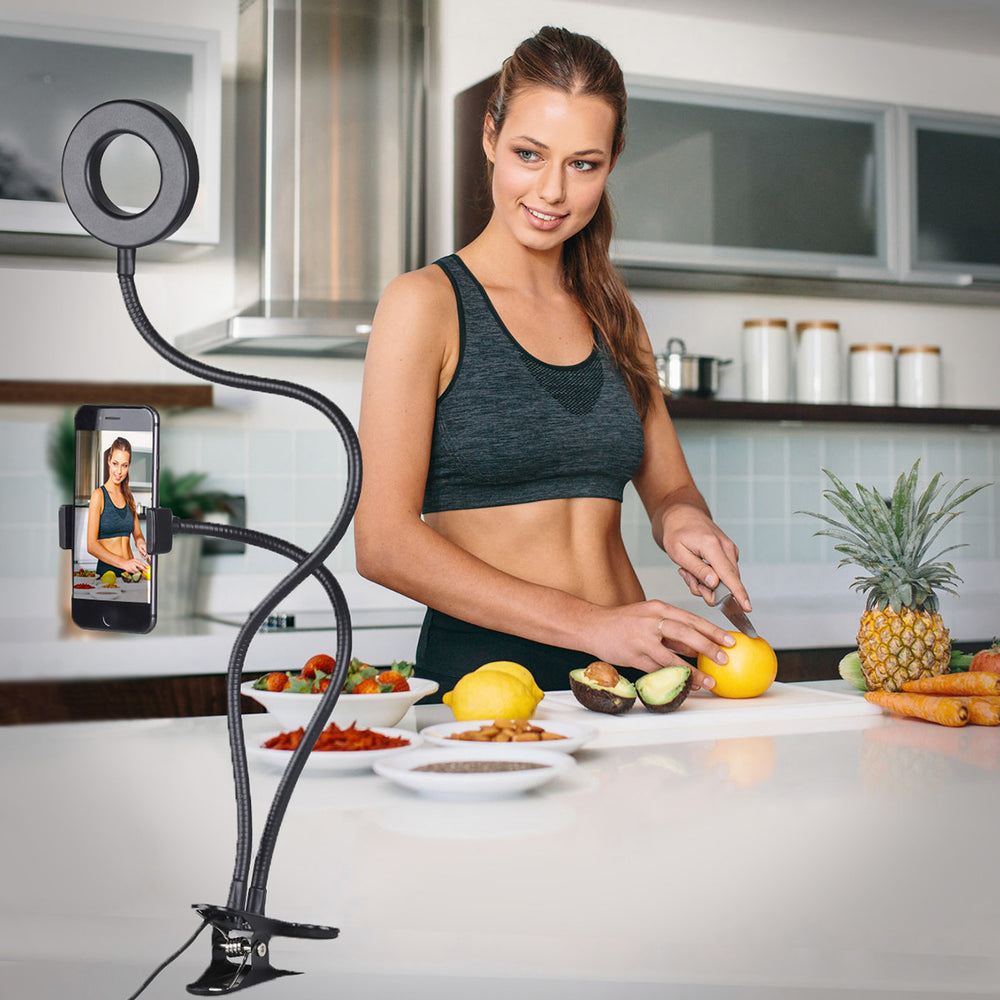 - Benutzerfreundlich: Befestigen Sie das Ringlicht mit der Handy-Halterung einfach an Tischen, am Bett oder anderen Gegenständen. So haben Sie die Hände immer frei.