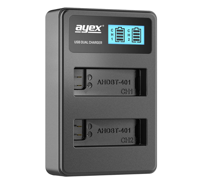 ayex USB Dual-Ladegerät für GoPro AHDBT-401 Akkus