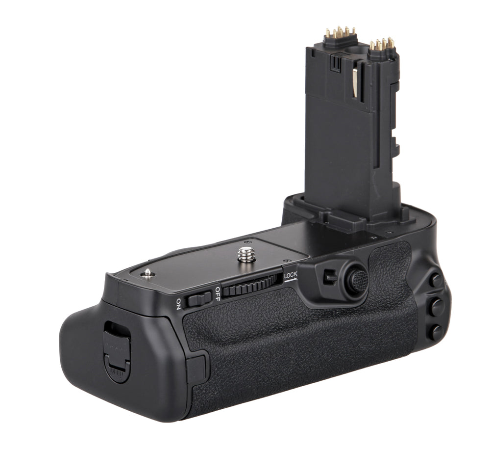 Mit diesem hochwertigen MK-5D4 Batteriegriff für die Canon EOS 5D Mark IV verdoppeln Sie die Leistungsfähigkeit Ihrer Kamera und können lästiges Akkuwechseln bei längeren Aufnahmen vermeiden. Fotos im Hochformat lassen sich ganz einfach und bequem über einen an der Unterseite angebrachten Auslöser aufnehmen. Dank der AF-ON Taste kann man den Autofokus aktivieren und das Objektiv stellt scharf.