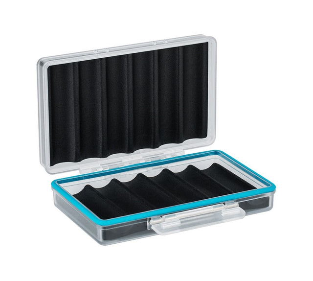 Das langlebige und ergonomische Verriegelungssystem ermöglicht ein einfaches Öffnen und Schließen. Zudem verleiht der durchsichtige Korpus mit leuchtend blauem Dichtungsring dem Koffer ein modisches und attraktives Aussehen.