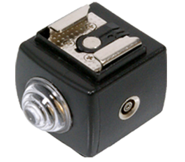 Es ist in einem kleinen handlichen Würfel aus stabilem Kunststoff untergebracht, das einen Anschluss für Stative (1/4 Zoll Gewinde) hat und zusätzlich kann man es an einem Blitzhalter per Blitzfuss anbringen.