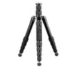 Das Stativ kann Equipment bis 12kg tragen und auf eine Länge bis 115cm ausgezogen werden. Die Beine, die aus 5 Segmenten bestehen, lassen sich in drei Anschlagwinkeln nach außen spreizen.