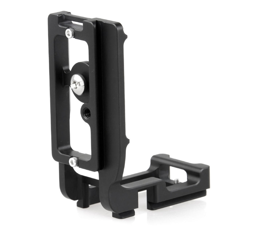 Die Adapterplatte verfügt über eine 1/4 Zoll Kameraschraube sowie ein 1/4 Zoll Innengewinde, um z. B. einen entsprechenden Kameragurt anzubringen oder die Platte auf einem Stativ zu montieren. Durch die seitliche Aussparung kann ebenfalls ein Gurt bzw. eine Handschlaufe gezogen werden.