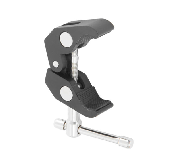 Diese Superklemme ist ein sehr flexibles und praktisches Werkzeug aus einer leichten, langlebigen Aluminiumlegierung. Sie eignet sich ideal für die Befestigung eines Magic Arms zur Halterung von LCD Feldmonitoren und SLR Kameras, aber auch weiterem Zubehör wie Kameras, Leuchten, Schirme, Haken etc.