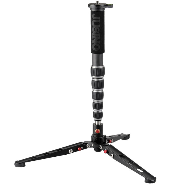 JUSINO Leichtes Karbon-Monopod bis 140cm/18kg ausklappbare Standspinne Kugelgelenk Tischstativ-Funktion