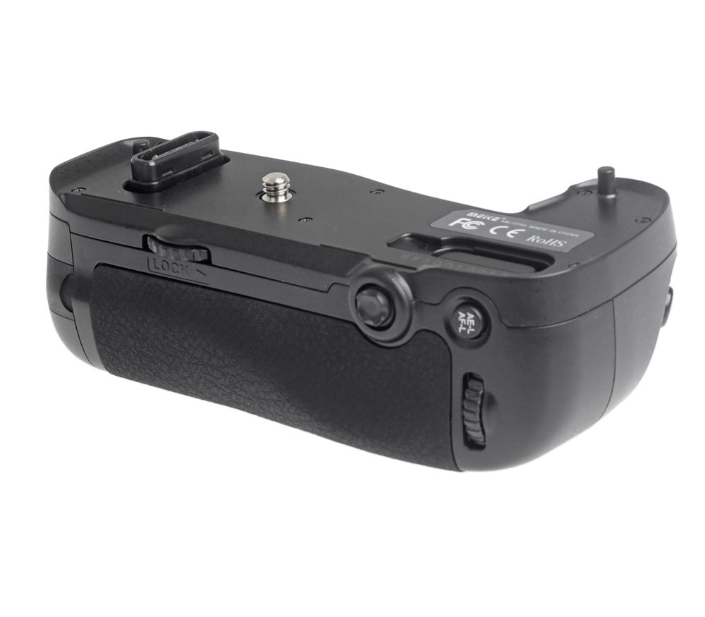 Zum Lieferumfang des Batteriegriffs gehören zwei herausnehmbare Akkuhalterungen, eine für den EN-EL15 Akku und eine für 6 Mignon-Akkus. Ein Akku bleibt in der Kamera, ein zusätzlicher wird über den Griff betrieben. Das verleiht der Kamera gerade bei langen "Fotokampagnen" doppelte Ausdauer und lästiges Wechseln der Akkus entfällt. An der Unterseite besitzt der Hochformatgriff ein Standardgewinde zur Befestigung auf einem Stativ.