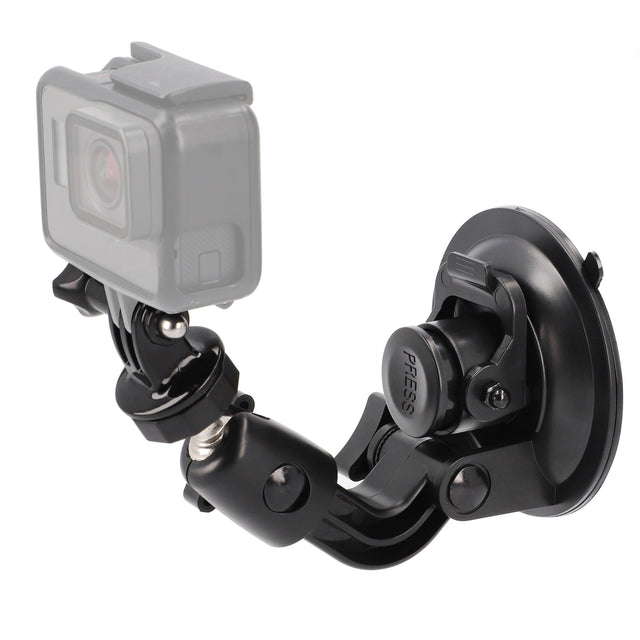 Diese Saugnapfhalterung bietet eine zuverlässige Befestigungsmöglichkeit für Actionkameras. Mit ihrer starken Saugkraft lässt sie sich sicher an glatten Oberflächen wie Windschutzscheiben, Autokarosserien oder Booten anbringen.